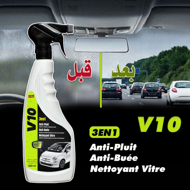 le nettoyeur de vitre v10 est facile à utiliser ,ne laisse pas de traces et améliore la visibilité sur la route par temps humide .
